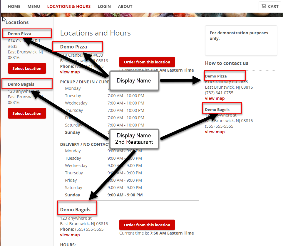 If you have multiple locations, each location's Display Name could include the street, city, or region. For example: "Classic Pizza - Manhattan" and "Classic Pizza - Brooklyn".