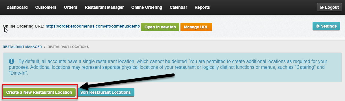 If you have just one location, you can simply add your restaurant's name here. The URL tag won't appear unless you create additional locations.